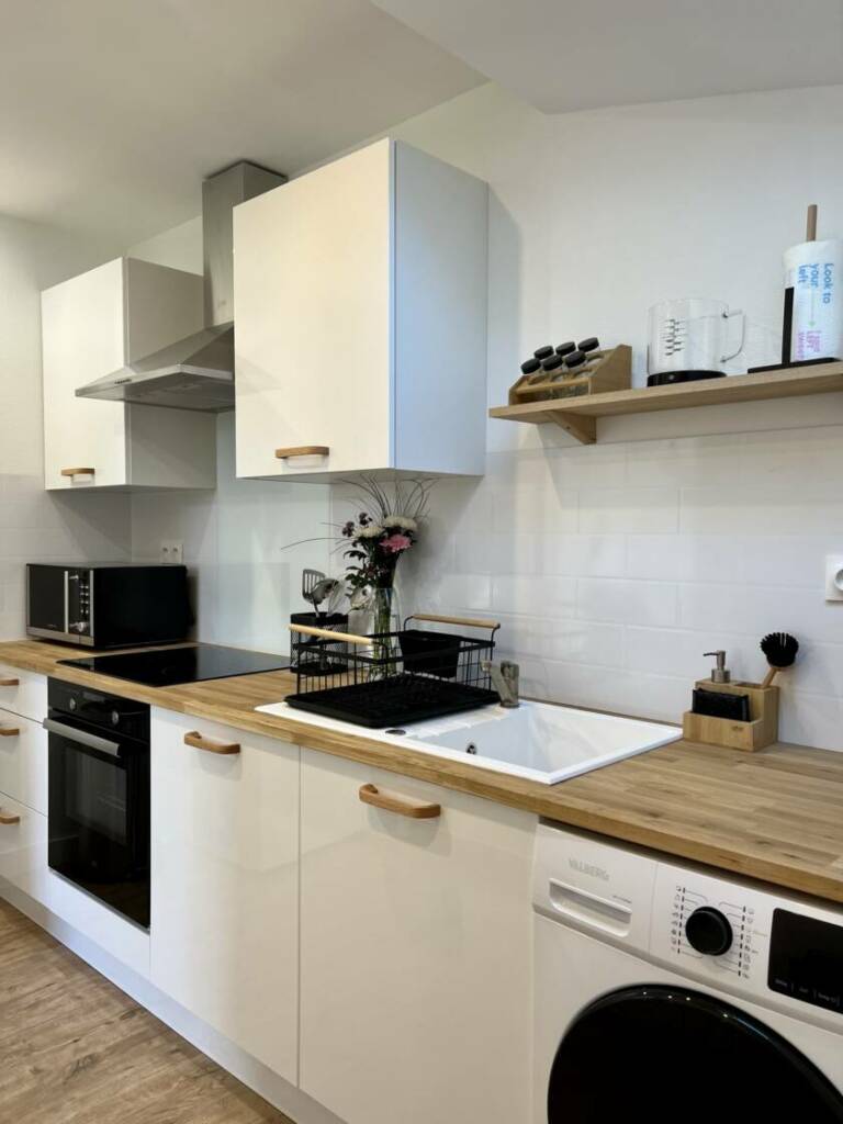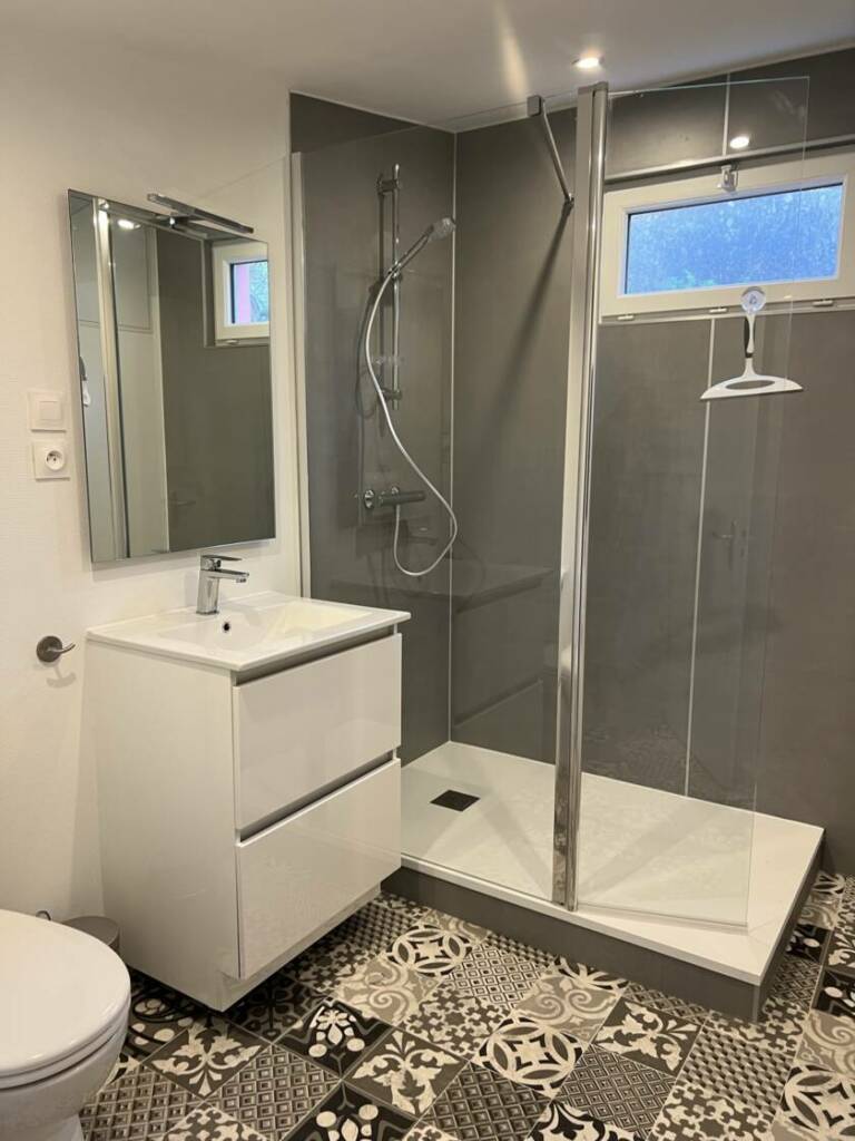 Cette petite maison d’une chambre était restée dans son jus, il fallait simplement révéler son potentiel avec une remise en état de l’isolation, de la plomberie et électricité, et surtout la décoration et l’aménagement pour la mise en location.